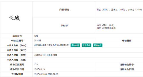 同样是申请在第30类,并且指定的商品也近似的情况下,长城图形的商标与“长城”文字商标在商标申请的实质审查阶段也没有被判为近似商标。