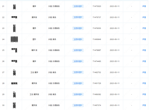 于是乎2023年5月11日漯河市卫龙商贸有限公司晚国家知识产权局商标局递交了新的商标申请“魔芋爽”,下面我们一起来看下这样是否就算有显著性了呢?